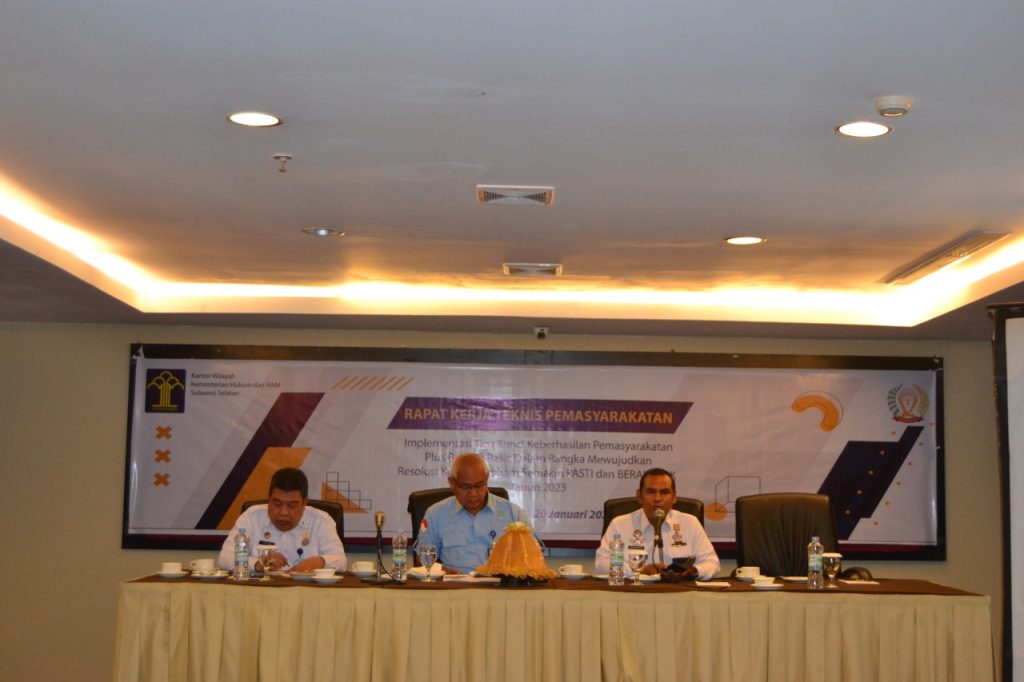 Makassar – Untuk mewujudkan Resolusi Kementerian Hukum dan HAM (Kemenkumham) Semakin PASTI dan BERAKHLAK di tahun 2023, Kantor Wilayah (Kanwil) Kemenkumham Sulsel gelar Rapat Kerja Teknis (Rakernis) Pemasyarakatan di Hotel Claro, Rabu (18/01).